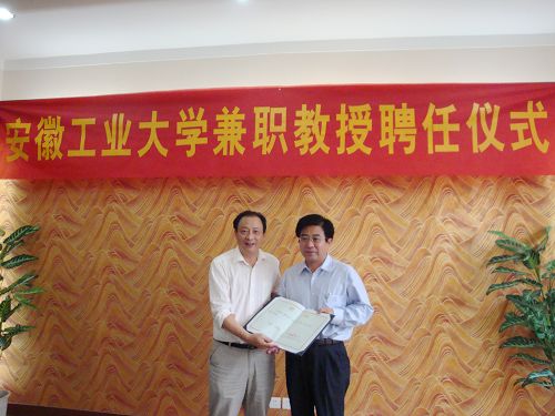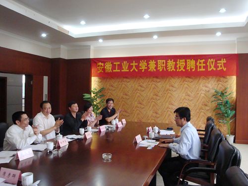929下午,安徽工业大学举行隆重仪式,聘任十七冶董事长、党委书记康承业担任安徽工业大学兼职教授。安徽工业大学校长、教授、博士生导师岑豫皖,副校长、教授、博士生导师林钟高,办公室主任、研究员戴玉纯,人事处处长、研究员黄修权,研究生学院院长、教授潘紫微,管理学院院长、教授杨亚达,管理学院党委书记李志杰,MBA教育管理中心主任、教授席彦群及刘芳、王明虎、钱黎春等管理学院各系主任参加了仪式。