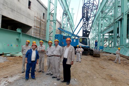 宝钢湛江钢铁有限公司总经理盛更红,宝钢湛江钢铁有限公司副总指挥刘代德,中国十七冶集团总经理助理王青山,总经理助理、广东十七冶建设有限公司总经理钟华彪等领导亲临施工现场观摩首台行车起吊的全过程。