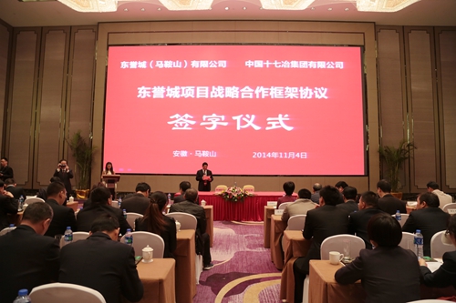 中国十七冶集团副总经理王振堂、东誉城董事长梁镇东分别代表合作双方在协议上签字。