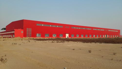 该工程位于江苏省连云港市徐圩新区国家沿海开发工业规划园区内,总建筑面积约43000㎡,其中生产车间建筑面积41000㎡,生产辅房建筑面积约2000㎡。结构件厂房为单层钢结构,生产辅房为钢筋混凝土框架结构,厂房主要用于旋弯管道、压力容器、管件设备的生产、制作。冶金工程技术公司承建结构件厂房主要包括为A-F列1-26线的PHC预制管桩承台基础、变电所及空压站工程、辅房工程、探伤室工程、循环水池工程、厂房及辅房给排水安装工程、消防安装工程、电气安装工程、防雷及接地装置工程、智能与信息系统、动力系统及采暖通风安装工程。工程自