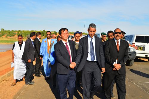 伊斯曼·乌尔德·沙德格副总理一行实地察看了希望三角洲Ⅱ标公路工程项目现场。项目经理陈道贵向沙德格副总理详细介绍了中国十七冶集团的企业性质、营业规模及海外项目战略谋划等,并汇报了关于两个标段工程施工进度、技术质量保证措施、安全环保及民生工程建设等方面情况。