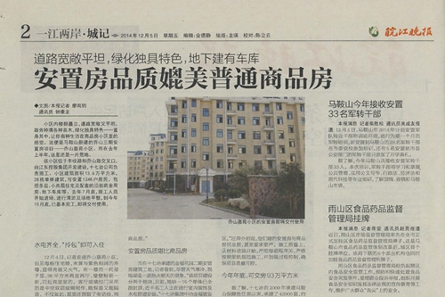 十七冶自2009年承建马鞍山保障性住房以来,承建了43000套,约450万平方米,目前,已交付260万平方米,计24000套;目前,尚有192万平方米在建。安置房建设是民生工程,中国十七冶集团积极承担央企社会责任、克服资金短缺、工期压力大等重重困难,合理组织施工,保证安全、质量,预计到今年年底,可交房93万平方米,确保百姓按时入住“放心”房。