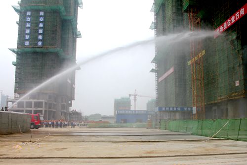 在用完5瓶5Kg干粉灭火器后,由于风力较大,火势呈蔓延之势,项目负责人当即决定向119报警支援灭火。几分钟后,救火车呼啸而至,在专人导引下抵近安全有效的救火地点展开灭火,巨型水柱喷向浓烟滚滚处......3时50分左右,火情被完全控制,演练结束。