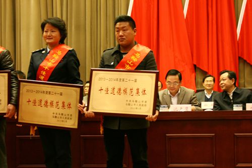 4月9日下午,马鞍山市精神文明建设工作会议在市会议中心召开。会上,中国十七冶集团南极泰山站建站团队荣获马鞍山市2013-2014年度第二十一届“十佳道德模范集体”荣誉称号。安徽省委宣传部副部长、省文明办主任贺懋燮,马鞍山市委书记张晓麟、市长魏尧、人大主任靳林春、政协主席李群等市四套班子领导出席会议并为“十佳道德模范集体”及“十佳道德模范”颁奖。