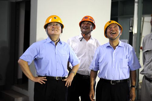 在炼钢项目现场,胡春华书记和中国十七冶集团总经理助理、炼钢工程项目经理钟华彪握手,并表达了对全体建设者的慰问。在听取工作汇报,实地了解项目建设有关情况后,他表示,广东将继续大力支持项目建设发展,加快配套设施和配套产业建设。希望各方面共同努力,把宝钢湛江钢铁基地建设成世界一流水平的绿色碳钢板材精品基地,建设成环保、高效的生态绿色钢厂,为推动粤西地区振兴发展以及促进我国钢铁产业转型升级作出应有贡献。