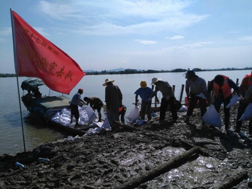 “抗洪抢险突击队”和“党员突击队”正日夜坚守在防汛抢险前线,随时准备应对一切挑战,守卫江堤,保卫家园。