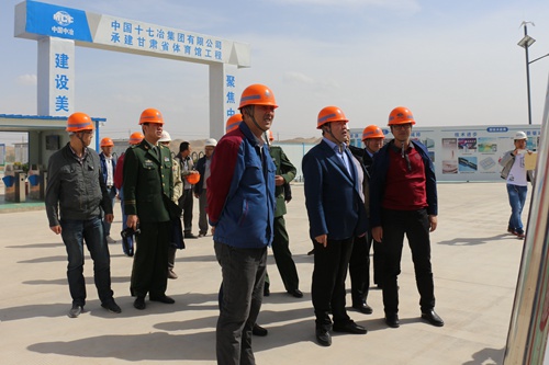 5月24日下午,兰州新区管委会副书记徐大武莅临中国十七冶集团甘肃省体育馆项目施工现场考察交流。兰州新区建设局局长王德福,质监站站长杨智,新区消防总队、安监局、兰州新区专家库人员以及兰州新区城投公司总工程师朱开才等陪同考察。