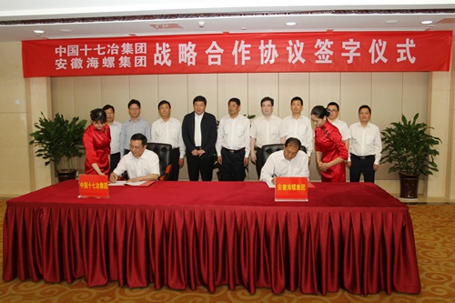 5月26日,中国十七冶集团与安徽海螺集团在安徽芜湖签订战略合作协议。安徽海螺集团党委书记、董事长高登榜与中国十七冶集团董事长、党委书记喻世功进行了友好的会谈并出席签约仪式,中国十七冶集团副总经理曹永忠与海螺集团副总经理、海螺型材董事长齐生立代表双方签署战略合作协议。