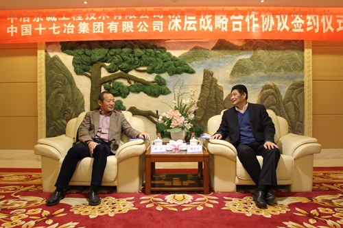 12月13日,中国十七冶集团在公司总部与中冶京诚工程技术有限公司签订深层次战略合作协议。中国十七冶集团董事长、党委书记喻世功与中冶京诚董事长、党委书记施设出席签约仪式。中国十七冶集团副总经理王振堂与中冶京诚副总裁郝勇兵代表双方签署战略合作协议。