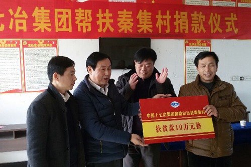 上午,在秦集村村部举行了十七冶向定远县秦集村捐助扶贫款仪式,蒋集镇党委、政府主要负责人和该村村民代表参加了捐助仪式。仪式上,蒋集镇党委书记刘会明深情回顾了十七冶长期以来从扶贫和农民工技能培训等方面给予的大力支持,对十七冶的无私帮助表示衷心的感谢。杨绍凤副主席表示,十七冶作为驻皖央企,积极参与定远的扶贫开发,积极践行企业的社会责任,责任重大,使命光荣。