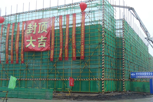 九洲方圆物流城项目8#地块二期工程位于亳州市开发区内,西侧紧邻魏武大道,由十二栋单体组成,总建筑面积64193㎡,其中D6/D7#楼建筑面积4305.66㎡,地上3层,局部4层,建筑高度14.25m。施工过程中,面对雨季施工难度大、外部扬尘检查要求严等不利因素,项目部合理安排施工资源、适当调整施工时间,顺利完成施工节点。随着该工程主体结构的封顶,工程将正式转入砌体、二次结构及装饰装修施工阶段。