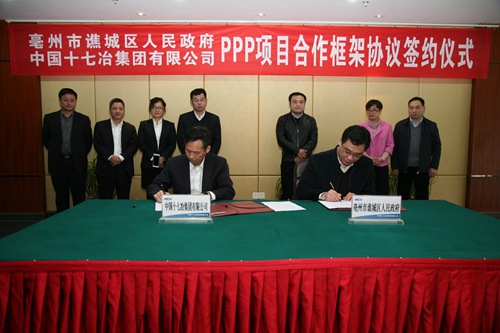 参加签约仪式的还有谯城区副区长潘菲、亳州市建设银行副行长吕梁、谯城区财政局局长方平红、谯城区PPP办公室主任丁艳敏;中国十七冶集团投融资管理部部长水恒宇、市场部副部长唐翠红,房屋工程技术公司经理唐世敏、合肥分公司经理吴晴冬等。