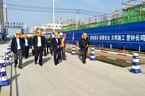 在现场,胡启书区长认真听取了项目部关于绿色文明施工、安全、质量、环保以及扬尘治理成效等工作的汇报,并详细询问了扬尘治理的相关经验和项目在节能、环保方面的具体举措。他对项目部环保工作规范、文明施工措施有力表示赞赏,并希望项目部要继续做好环境治理工作,强化“四节一环保”、标准化施工措施,扎实开展工作,树立良好的央企形象,带动其他施工企业共同为淮北市的环境保护工作做出贡献。