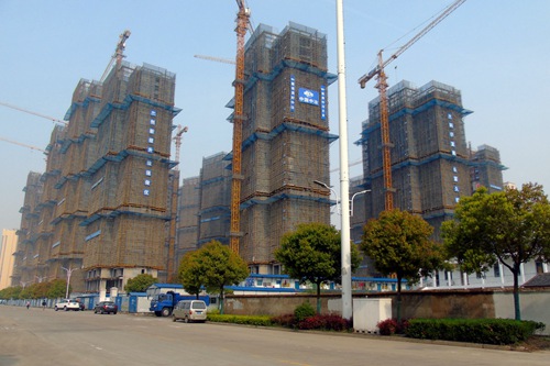 4月12日上午, 蚌埠市住建委组织三县一市(怀远县、固镇县、五河县、市辖区)50余家施工企业到中冶置业(安徽)公司蚌埠兰凤路安置房项目观摩学习质量、安全和文明施工管理工作。