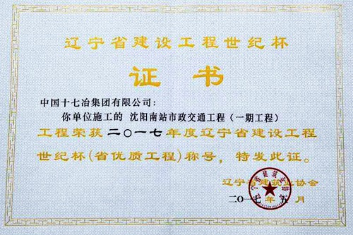 5月31日,由中国十七冶集团城建工程技术公司施工的沈阳南站市政交通工程(一期工程)喜获辽宁省建设行业最高奖项“辽宁省建设工程世纪杯(省优质工程)奖”。这是该工程继2015年度获“辽宁省建设工程优质结构”工程奖后赢得的又一项质量殊荣。