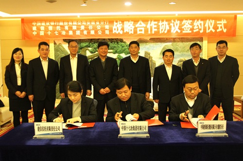 3月2日上午,中国十七冶集团与建行安徽省分行、建信信托在公司总部签订战略合作协议。中国十七冶集团董事长、党委书记喻世功、副总经理王振堂,建行安徽省分行副行长陈光华,建信信托公司业务总监黄建峰出席签约仪式。