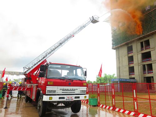 当日上午,观摩团还参加了联合消防应急演练。项目部按照演练事先做出的精心策划和细致安排,与东兴市消防大队及东兴市急救中心联合在现场组织了一场实景火灾、触电事故救援演练,展示了项目部与消防、急救部门的联动机制和在火灾中逃生、自救、疏散能力。