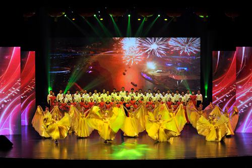 活动结束后,喜庆热烈的文艺汇演正式开始。十七冶医院的大合唱《与梦飞翔的绚丽彩虹》,诠释了十七冶历经60年栉风沐雨,才铸就了今天的辉煌;歌舞《春之声》吹起了勤劳智慧的十七冶人积极践行“一天也不耽误、一天也不懈怠”的企业精神和“24小时工作法”的前进号角;男声独唱《天路》唱出了建筑人的心声,也唱出了广大十七冶员工的奉献精神;舞蹈《但愿人长久》向在背后默默奉献的员工家属们致以崇高的敬意;冶金工程技术分公司的大合唱《传奇》,再现了十七冶逆势上扬至中冶集团“前三甲”的传奇;琵琶与舞蹈《春江花月夜》让大家沉醉在幽美邈远的春江美景中;男声独唱《故乡的云》和《永恒的旋律》,优美的歌声将大家带回到了那个激情飞扬的时代,炽热浓烈的爱国之情油然而生;萨克斯独奏《星空下的浪漫》讲述了十七冶依然坚守岗位,享受星空下“浪漫”的故事;安徽家乡戏——黄梅戏《到底人间欢乐多》,淳朴流畅、欢快活泼;女声独唱《红梅赞》、《中国梦,我们的梦》,传统美声与流行元素相融合的唱法,气势磅礴、旋律动人、情感充沛、内涵深刻,让大家久久沉浸在优美的歌声中;男女合唱的《不忘初心》,博得满堂喝彩;4000名十七冶人的梦想汇聚在一起就能成就“十七冶发展之梦”,而无数的“十七冶发展之梦”的汇聚,则能成就伟大的“中国梦”,工程科技公司和工程技术服务分公司员工大合唱《共筑中国梦》为文艺汇演画上了圆满的句号。