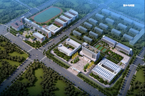 该工程位于安徽泗县东二环路与二环北路交口东北角,设计拟建试验楼、实训楼、综合办公楼、宿舍楼及相关配套设施,总建筑面积约50000平方米。其中教学楼位于西地块的东南角,为一栋5层建筑和1层裙房,主要功能为教学楼和报告厅;综合办公楼位于东地块的中心,为一栋9层建筑,主要功能为会议室、图书室、办公室和学生活动室;实验楼位于东地块的西南角,为一栋4层的建筑,主要功能为实验室;宿舍楼位于东地块的北侧,为两栋6层的建筑。
