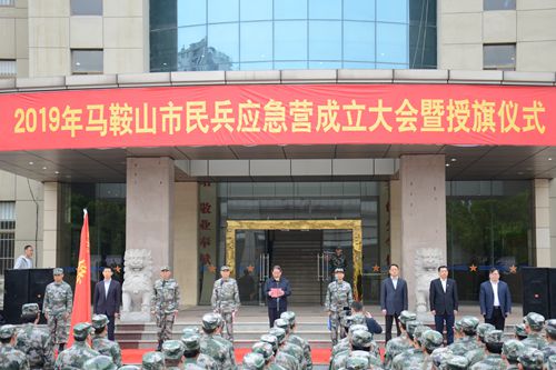 4月16日,马鞍山市军分区组织开展市民兵应急营集中点验暨授旗仪式。马鞍山市委副书记、市长左俊,副市长杨善斌、市政府副秘书长刘观林、中国十七冶集团副总经理伍昌国等参加了授旗仪式。