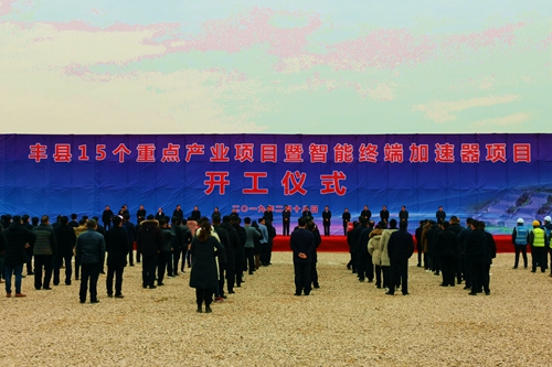 2月18日上午,中国十七冶集团有限公司房屋工程技术分公司承建的徐州市丰县智能终端产业园项目开工徐州市副市长毕于瑞丰县县委书记王克华,县委副书记、县长娄海;公司副总经理伍昌国,房屋工程技术分公司经理丁云霄等参加了开工仪式。
