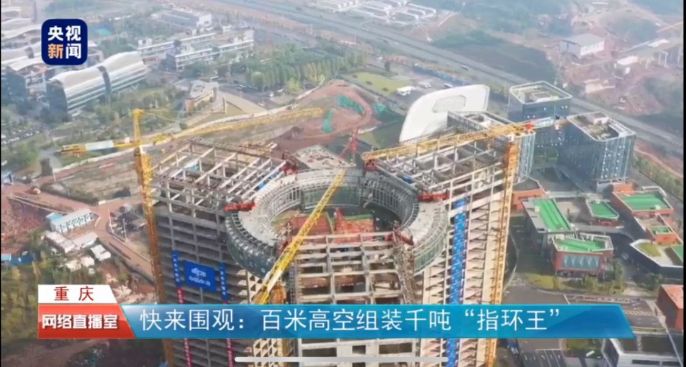 据悉,重庆仙桃数据谷是围绕深入贯彻实施国家大数据战略、加快建设数字中国而建设的大数据产业园区。中国五冶承建的重庆仙桃数据谷二期一标段项目在其中具有鲜明的特色,被誉为巨型“钢指环”的仙桃数据谷9号楼环形连廊外径达32.6,内径为20.6米,高度达到99.8米,总重高达2060吨,连廊将数据谷内3座塔楼无缝串联,在重庆数据谷内成为显著地标。由于提升高度近百米的钢结构高空环廊整体提升工程在全国均属罕见,为确保顺利实施,中国五冶采用了BIM综合管理技术、“BIM+机器人”测量放线等一系列新技术,为环廊顺利从“谷底”飞跃至百米高的“云端”保驾护航。