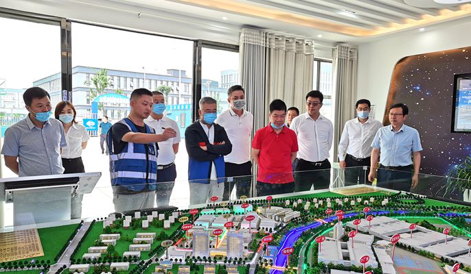 陈炎兵书记一行来到十七冶智慧工地展示厅,观看沙盘及项目介绍效果图,认真听取了项目负责人关于江西百宏光电有限公司、在建的江西星星科技有限责任公司施工进度情况,详细了解了萍乡市电子信息产业规划、发展情况,对项目所落实的各项管理措施给予了充分肯定。他强调,要充分发挥央企的综合实力,更快更好推动重大项目建设,加大招商引资力度,大力实施铸链强链补链扩链工程,切实提升产业抗风险能力和竞争力,为萍乡电子信息产业高质量跨越式发展打下坚实的基础。