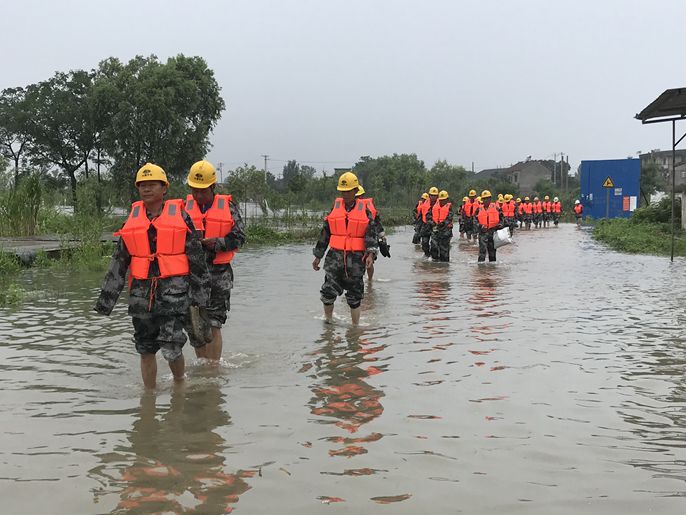 突击队不畏危险赶往抢险点