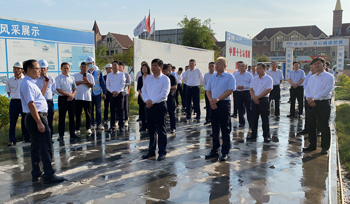 在项目现场,尹二军书记观摩了项目大剧院、城市会客厅、科技馆、博物馆,并详细了解了市民中心项目施工进度,对项目自开工建设以来加强现场安全文明施工和质量及发扬“高效严谨、精细务实”的企业作风给予充分肯定。他表示,项目建设过程中要紧扣工期,把握时间节点和建设任务,提高施工效率,全力推动项目建设,做到高质量建设、高效率推动、高标准完成;项目管理要科学规划,加强监督管理,强化安全意识,严把施工安全、质量关,确保项目建设安全稳步有序推进。