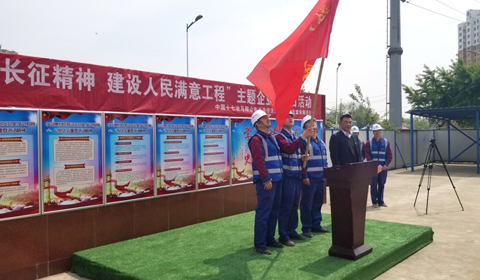 随后,为积极响应中国十七冶“创先争优,实现全年营业收入400亿元”劳动竞赛,项目部举办劳动竞赛启动仪式,组建党员先锋队。十七冶交通分公司党委委员、纪委书记、工会主席为党员先锋队授旗,并做动员发言,动员工区员工将“长征精神”落到实处,全力冲刺赶工期,尽快完成在建的开发区产业园配套路网建设,响应开发区管委会的总体规划,为当地的经济腾飞助力。