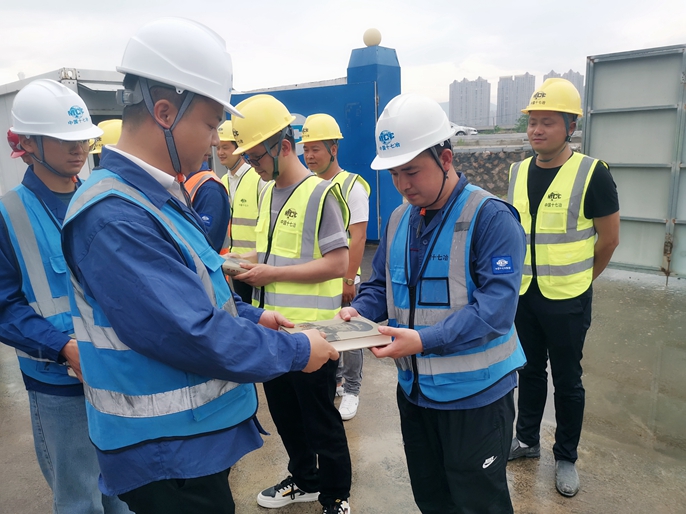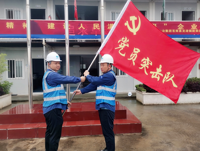 在办实事、开新局环节,媒体记者实地观摩了项目安全质量标准化管理,近距离接触施工工艺,通过项目总工对施工、技术、质量、安全和党建工作的细致讲解,真真切切了解了施工现场的绿色文明标化建设,安全环保管理等,展现出十七冶项目在科技创新、技术突破、抢抓工期、质量管理等各方面攻坚克难、拼搏奋进的成果。随后项目部开展了践行“抗美援朝精神”党员突击队授旗仪式,并由项目党支部牵头,组织“保节点、保安全、保质量”誓师大会,由党员牵头,全体参战人员参加,面向党旗,作出发扬抗美援朝精神,用实际行动确保项目建设完美呈现的郑重承诺。项目经理围绕如何推进精品安置房工程建设,结合发扬抗美援朝精神,分享建设人民满意工程工作思路,并表示要牢记历史、扛起旗帜,推动抗美援朝精神入心入脑、化为行动,以“只留精品、不留遗憾”的品质理念为准绳,夜以继日,排除万难,全力确保实现各个节点目标,为龙港市民生工程再作新贡献。