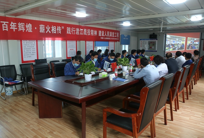 在办实事、开新局环节,项目现场举办党员先锋队成立仪式,中国十七冶集团纪委书记、副总经理蔡进向望江片区项目部授旗,要求项目部要将渡江战役精神贯彻到施工生产一线中,在创优创先精品工程过程中勇于争先,建设人民满意工程。片区项目负责人刘鎏与中冶置业(安徽)公司党委书记徐良蓉分别代表项目全体作业人员与领导干部团队作表态发言,表示将把“渡江战役精神”落实到项目建设中,争取提前完成施工,让项目早日发挥经济效益,促进驻地地方经济发展,展现十七冶员工“干在实处、走在前列”的卓越风采。最后,项目负责人带领大家参观了项目现场,介绍望江片区在建项目的建设意义、板块拓展、智慧工地、安全管理、绿色施工、门禁系统使用、企业文化等,展示了项目部运用现代化技术、标准化管理建造人民满意工程的过程以及企业品牌形象,讲述了项目团队凝心聚力、履行央企责任、体现央企担当的基层故事以及将渡江战役精神与项目建设的实际行动相融合的过程。