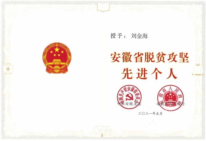 在安徽省定远县蒋集镇秦集村,刘金海为了从根本上解决贫困问题,他坚持不懈抓产业、找资金,帮助秦集村新建了三座共计8000平方米的温氏养猪场,引入“公司+合作社+农户”的产业化经营模式,养猪场每年饲养1000头生猪,一年可获得毛利润20万元。他数次奔走于蒋集镇、定远县和省交通厅,终于争取到120万元项目资金修缮扶贫桥,主导新建了扶贫车间,带动周边村民260多人就业,日产6万只包装箱,全镇村集体经济收益每年增加51万元。依托十七冶建筑企业优势,主导成立定远秦集建筑工程有限责任公司,对100多位贫困村民进行职业技能培训。在他的努力下,23个占地22亩的果蔬大棚和一座光伏发电站相继建成,一系列实打实的“造血”举措,使得秦集村集体产业从无到有,集体经济成倍增长。这位蒋集镇人民心中的好书记一心扑在扶贫上,经常是通宵达旦、废寝忘食,2020年,却因劳累过度病倒在了工作岗位上。他用心血和汗水谱写的脱贫壮歌被《新华网》《人民网》《安徽日报》等国家省市媒体聚焦,在社会各界引起热烈反响。