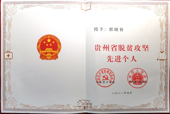 贵州省德江县地处国家级特困地区的武陵山区腹地,2019年4月,郭晓春被中国五矿选派到贵州省德江县挂职副县长。他从产业基础设施入手,为贫困村引入“源头”活水,帮助维修山塘一座、新修蓄水池3个、铺设引水管网10公里、安装滴灌设施260余亩、新修产业路7100米等,使当地成功摆脱“富水缺水”困扰。他甘当产品“推销员”,依托“娘家”优势开展消费扶贫,通过订单式采购23万多斤德江脐橙,并通过做客网络直播间为当地的金丝皇菊等特色农产品带货“出圈”,累计帮助销售农产品数百万元。积极推行“公司+贫困人口”帮扶模式,开展技能扶贫,联系十七冶教培中心传授钢筋工、砌筑工、模板工等技能实操,并引荐至十七冶贵州项目,带动建档立卡贫困户家庭10户以上;通过聘用贫困户加强茶园管理,带动石龙村及周边乡镇群众100余人在家门口就业增收。