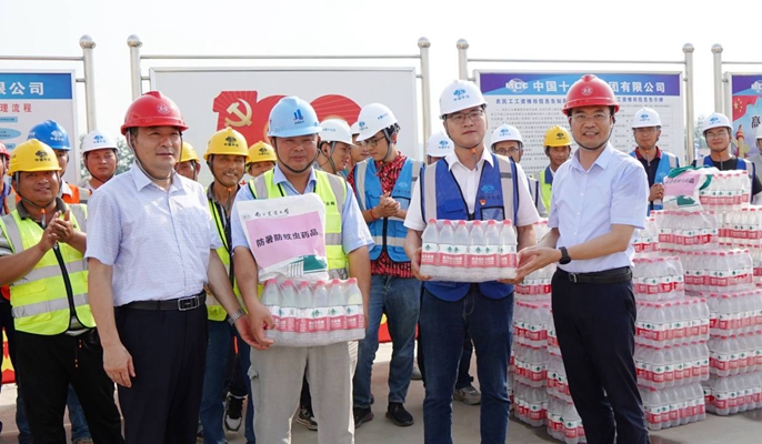 为保障一线员工身心健康,切实做好高温天气职工劳动保护工作,7月15日下午,南京农业大学校长陈发棣、党委副书记刘营军到十七冶集团有限公司江苏分公司承建的南京农业大学江北新校区一期工程项目开展“送清凉”慰问活动。