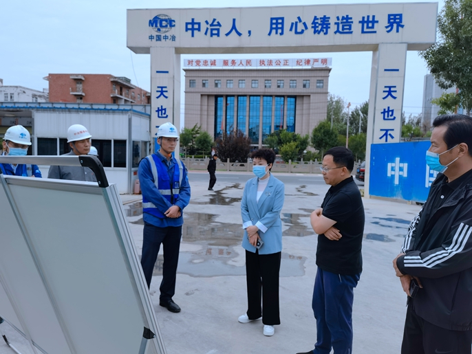 在项目施工现场,宫卫红主任一行认真听取了项目负责人关于当前施工进展情况的汇报,并仔细查看了现场安全生产措施落实情况,对项目当前推进情况以及十七冶员工节假日仍坚守一线的辛勤付出给予了肯定。宫卫红主任强调,项目施工区域位置特殊,紧邻国控点,扬尘管控难度大,项目部要严格落实各级环保政策,做好排水防汛工作,确保工程安全推进,如期完工。