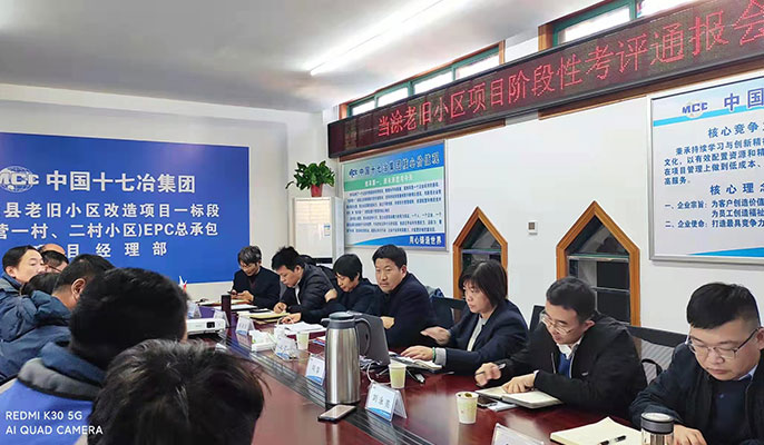 11月8日10日,中国十七冶集团项目管理部牵头组织总部安全生产监督管理部、技术质量管理部、经营预算部、党委组织部、党群工作部、招标采购中心7个职能部门部门对马鞍山在建的老旧小区改造及红线外基础设施6个项目的安全进度与节能环保、技术质量、物资与分包采购、人力资源、经营、企业文化8个方面进行第二阶段专项考核。