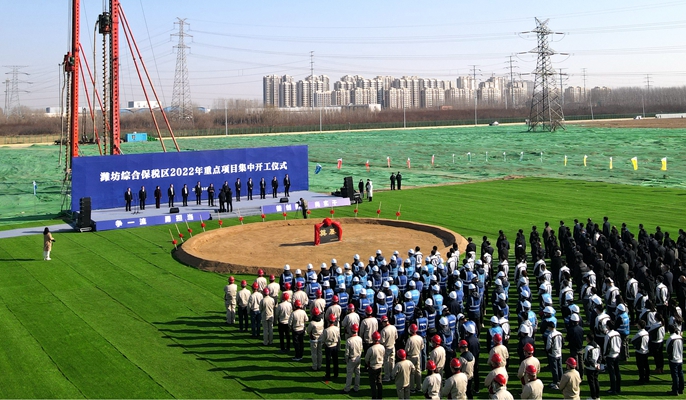 3月2日,潍坊综合保税区2022年重点项目集中开工仪式在中国十七冶集团承建的保税虚拟现实产业园1#、2#车间及配套工程总承包项目举行。保税区党工委书记王龙堂,党工委委员、管委会副主任张华,潍坊市工信局、市投资合作促进局、市住房和城乡建设局,保税区经济发展局、贸易发展局、建设管理局主要负责人出席了开工仪式。