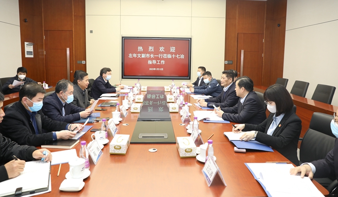 喻世功董事长对左年文副市长一行的到访表示欢迎,对马鞍山市委、市政府给予十七冶长期不懈的大力支持表示衷心感谢。喻世功董事长表示,马鞍山是十七冶总部所在地,是公司深耕安徽的重心所在,在市委、市政府的大力支持下,十七冶在这片沃土不断拔节生长,高质量发展取得丰硕成果。2022年,公司以党的二十大精神为引领,认真贯彻落实党中央、国务院、马鞍山市委市政府的决策部署和任务要求,切实抓好稳增长、抗疫情、保安全、防风险各项工作,新签合同额、营业收入、利润等主要经济指标再创历史新高,总部市场首位度更加突出,这些成绩的取得凝聚着全体员工的辛勤付出,更是市委、市政府正确领导的结果。立足新发展阶段,十七冶坚持以马鞍山作为区域深耕的重中之重,更加主动对接重点项目建设,发挥全产业链管理优势,积极拓展高端要素资源,在生态环境治理、城市商业开发、民生保障等更多领域深化合作,为马鞍山争做“三高地、两先锋”,加快打造安徽的“杭嘉湖”、长三角的“白菜心”贡献更多十七冶力量。