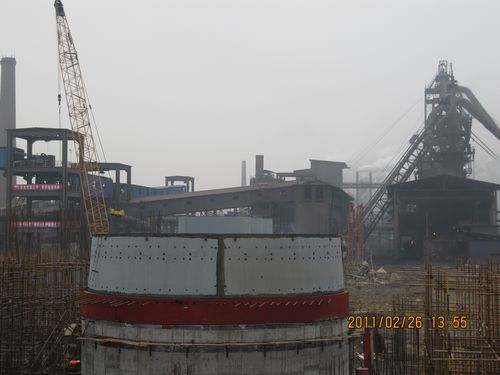 226上午,由江西分公司承建的九江钢厂1080m3高炉本体炉壳第一带吊装顺利就位。该工程节点的完成拉开了高炉钢结构吊装的序幕。