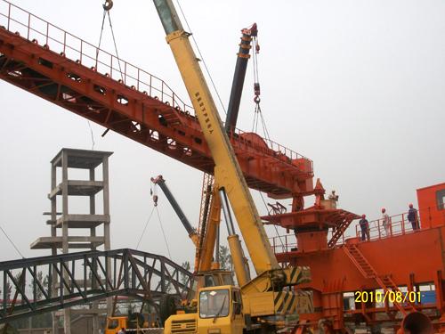 河南焦作千业水泥圆堆堆臂吊装成功