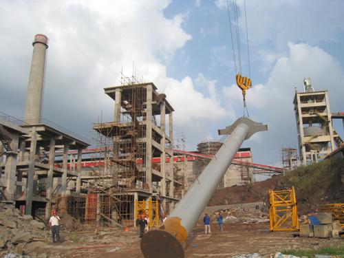98下午,由水泥工程技术公司承建的达州海螺二期4500t/d熟料生产线工程,机电设备安装项目烧成窑尾预热器塔架第一根钢柱顺利吊装就位,标志着达州海螺二期安装工程拉开了施工序幕。