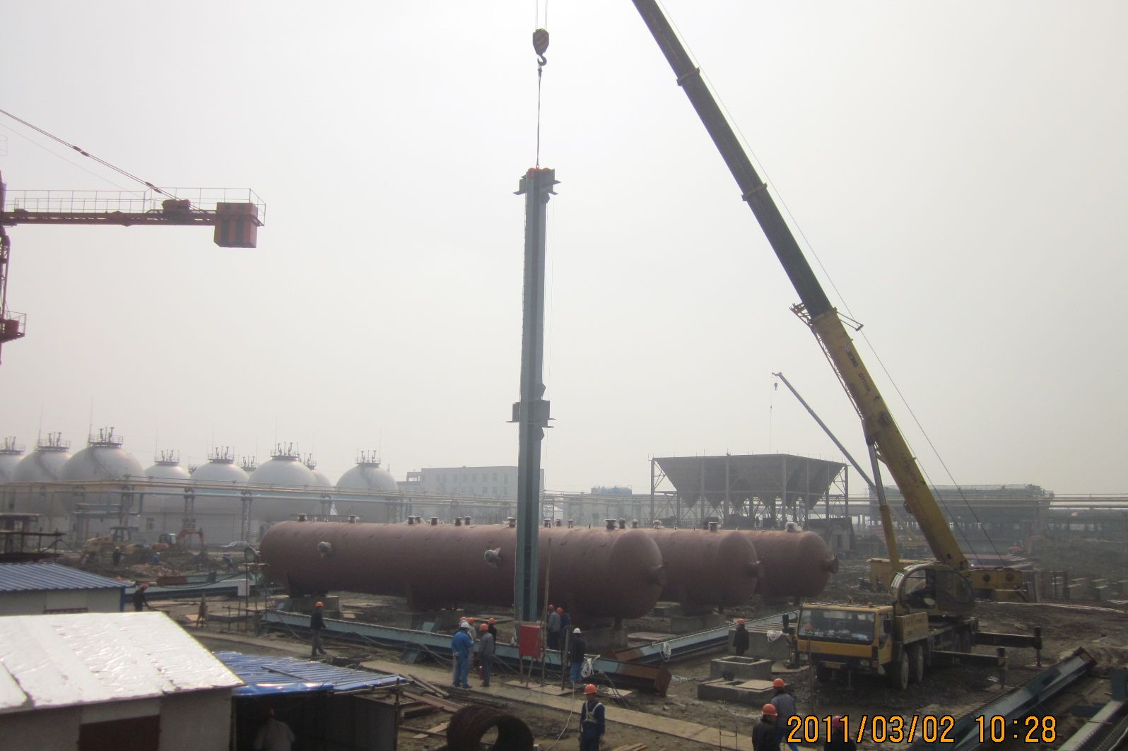 3月2日上午10:18,梅钢二期炼钢公辅项目蓄热站钢结构第一根钢柱开始吊装,标志着该工程正式进入钢结构安装阶段。