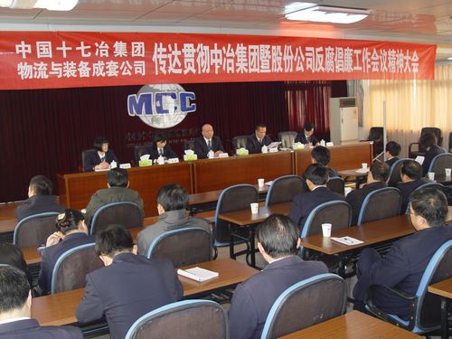 39下午,物流与装备成套公司召开专题学习会,传达贯彻中冶集团暨股份公司2011年反腐倡廉建设工作会议精神。公司党委书记王炳行传达了国文清书记的重要讲话精神。公司经理崔逊斌强调,各级领导要切实转变工作作风,深入基层,加强沟通及时解决转型中所遇到的问题各项规章细则的制定,要与企业当前发展形势紧密结合,要以满足大部分员工意愿为前提要正确理解收入提高和公司发展的关系,以积极的心态,实现企业与个人的共同发展。
