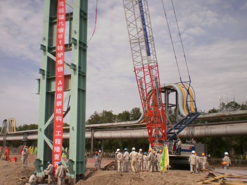 531,由我公司承建的新疆八一钢铁150t转炉主厂房K列五线钢柱吊装一次成功,标志着150t转炉工程主厂房钢结构进入全面吊装阶段。