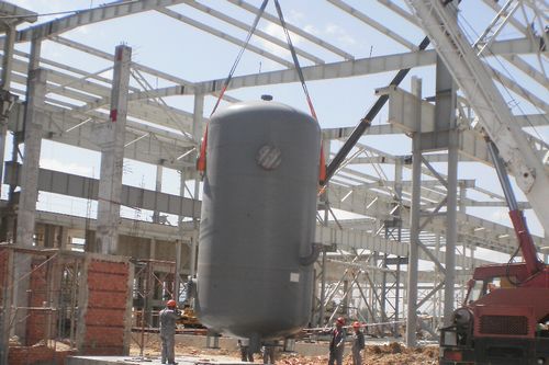 48上午,由水泥工程技术公司承建的越南CSVC公辅项目一台重11吨的储气罐顺利吊装, 标志着该项目正式进入设备安装阶段。
