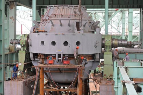 65下午,由十七冶冶金工程技术公司承建的内蒙古德晟金属制品项目炼钢连铸工程100t转炉成功安装就位。