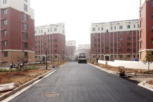 乔山安置房项目开始摊铺小区沥青路面