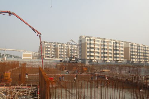 11月1日上午,马鞍山市金安小区安置房项目农贸市场开始浇筑地下室底板混凝土。至此,该子项工程施工进入到主体结构施工阶段。 该农贸市场总建筑面积8537㎡,浇筑底板混凝土量约1400m3。为加快浇筑进度,项目部科学合理安排施工,在保证质量、安全的前提下,使用3台混凝土泵车同时进行浇筑,加快推进项目建设。