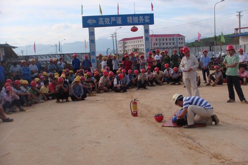 710,水泥工程技术公司湖南江华海螺项目部在施工现场举办了消防器材使用、中暑、触电等安全应急自救、互救教育演练活动。